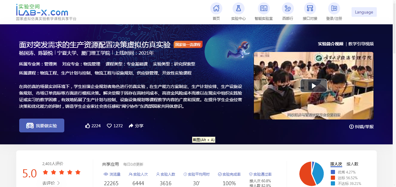 一流课程建设启动共建虚拟仿真实验课程,高效地进行了项目协作建设探讨、商议和实施。期间,两校合作远程协作完成申请书撰写、视频合成、国家实验空间的系统上传等工作,高效地完成了申报手续。2023年6月两校合作申请《面对突发需求的生产资源配置决策虚拟仿真实验》教学获批第二批国家级一流本科课程,并为后续协作发展奠定了坚实的基础。