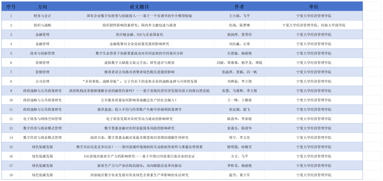 研究生和导师共同撰写的18篇论文成功入选,涵盖组织与战略、金融管理、营销管理等10个专题。