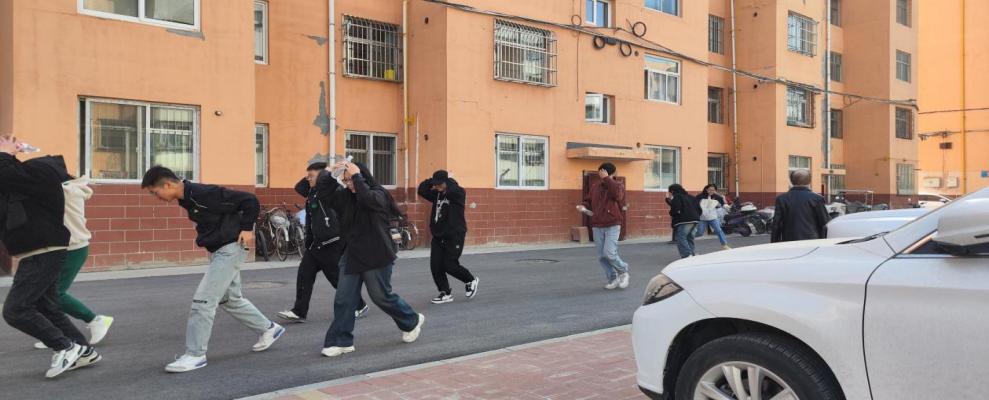 当“地震警报”骤然响起时,学生和社区人员迅速进入应急状态,双手护头,就近躲避在三角墙角下;待“主震”结束信号发出,人员按预定路线有序撤离至集合点。安全员通过视频演示“黄金三角区”避险技巧,并强调“冷静应对、科学逃生”的重要性。