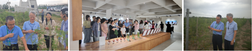 9月7日下午,大会组织开展贺兰山东麓农业特色产业调研活动,50余位专家学者代表积极参与,分别赶赴志辉源石酒庄、殷红子熟枸杞庄园实地考察。在志辉源石酒庄,专家学者们详细了解酒庄在葡萄品种选育、绿色栽培技术应用及葡萄酒酿造工艺创新等方面的实践,探讨特色林果产业技术体系构建与三产融合发展模式;在殷红子熟枸杞庄园,专家们与庄园负责人围绕“枸杞标准化种植”“精深加工技术研发”“品牌化运营”等内容交流探讨,并现场采摘、品尝鲜枸杞及枸杞深加工产品;同时结合宁夏枸杞产业发展现状,分析宁夏特色农产品产业技术升级与高质量发展的路径,为理论研究与地方产业实践对接搭建桥梁。