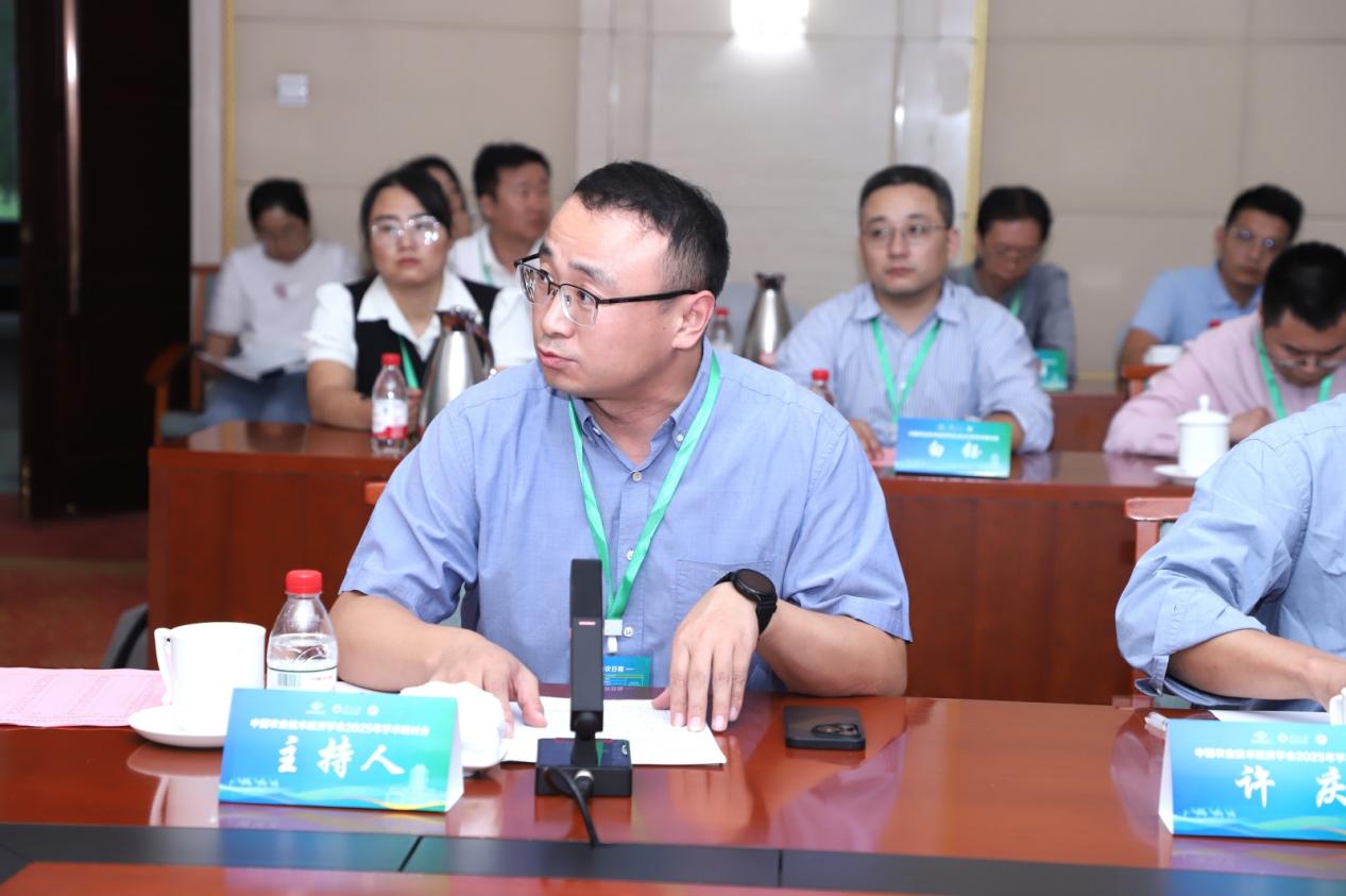 最后,西北农林科技大学吴丽姝博士报告了中国农业新质生产力的测度方法与影响机制。研究显示,农业新质生产力呈现稳步增长但区域间不平衡现象突出,受人力资本、技术创新与制度环境等多因素影响。她建议通过加强农业科技研发、深化教育改革、优化要素配置促进区域协调发展。杨丹教授在评议中强调应进一步突出地域异质性分析,完善新质生产力评价体系,强化结果的政策针对性。