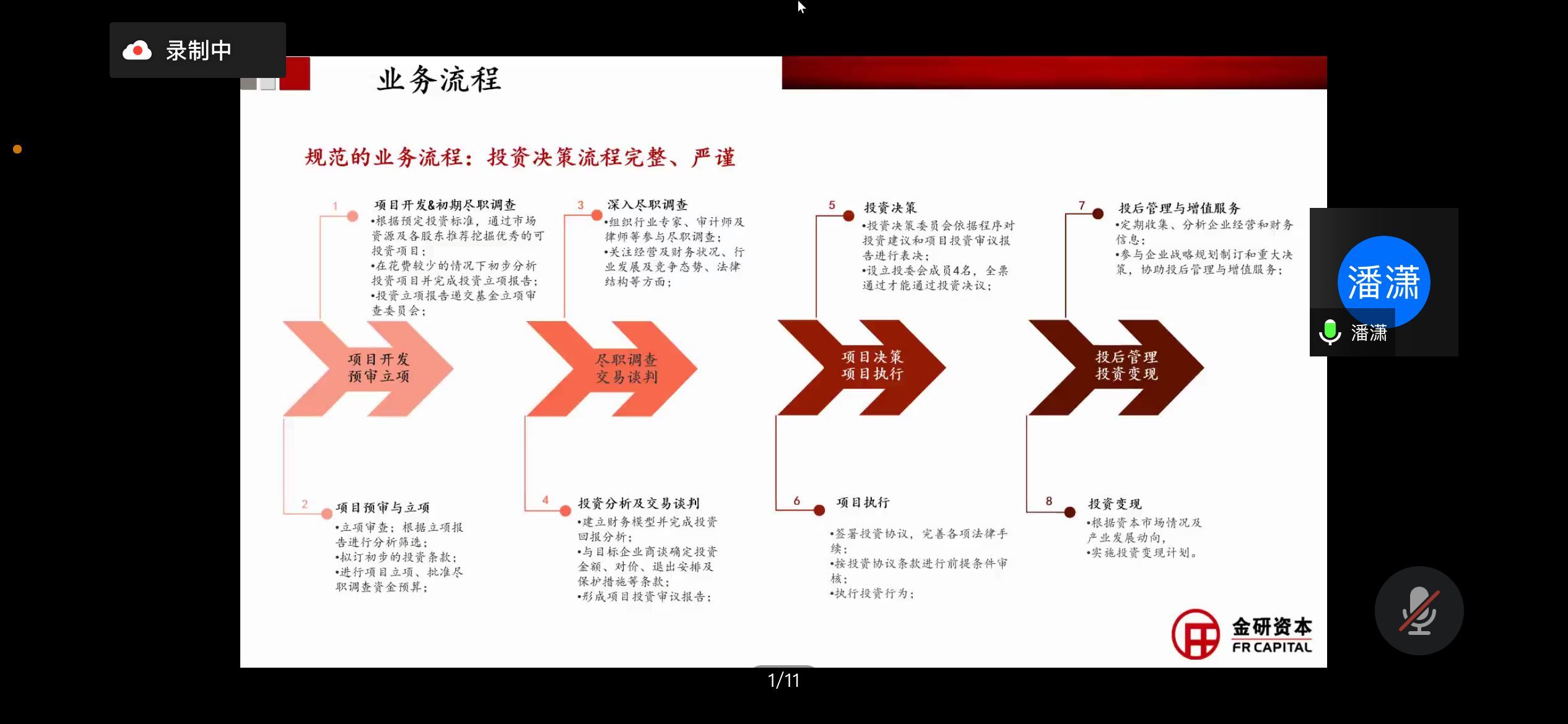 潘潇向同学们介绍了金研资管的基本情况和公司理念,讲解了私募股权基金的法律法规知识。潘潇以金研资管为例,详细讲解了基金的组建要素及基金核心条款,他以近几年的工作经验分析了投资主题和标准,分享了自己对投资方法及策略的见解。潘潇强调,投资决策流程要完整、严谨,每个项目都要严格遵循规范的业务流程。