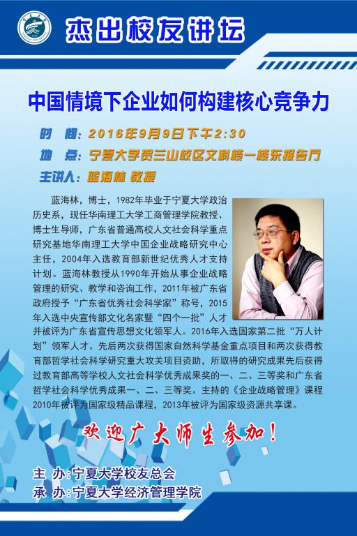 宁夏大学杰出校友讲坛开幕式暨蓝海林校友