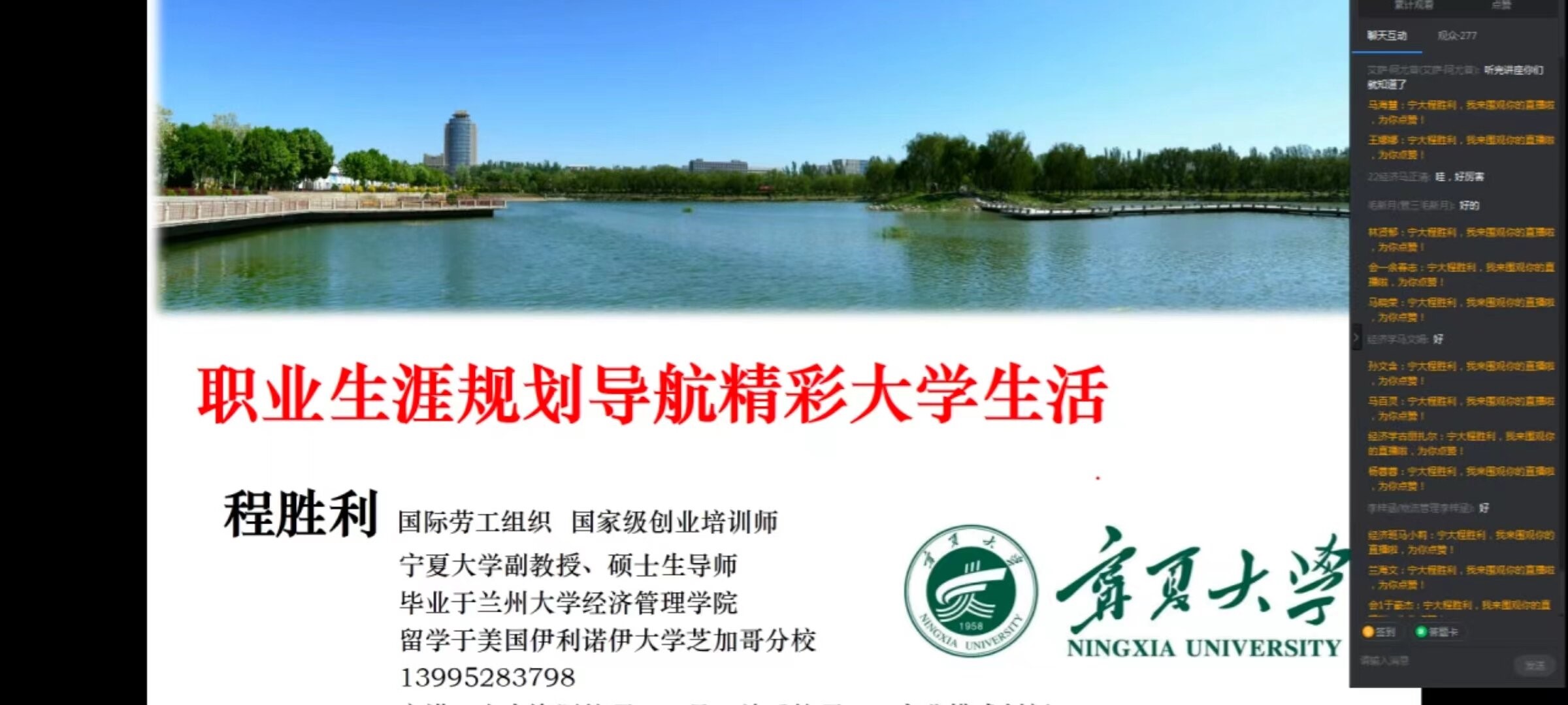 为帮助大学生根据职业要求制定职业生涯规划,确立个人职业目标和奋斗方向。10月9日晚,游戏赚钱平台 “经管人生”系列职业生涯规划讲座于线上顺利举行。宁夏大学机械工程游戏赚钱平台 党委书记、国家级创业培训师程胜利,游戏赚钱平台 学生工作办公室负责人艾萨·阿尤普,辅导员孙文元以及2022级全体本科生参加此次讲座,本次讲座由程胜利主讲,艾萨主持。