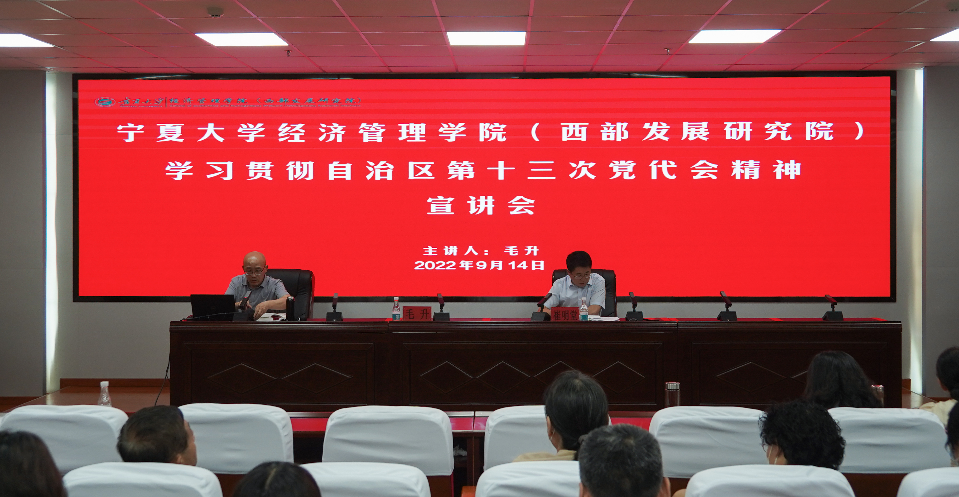 (西部发展研究院)学习贯彻自治区第十三次党代会精神宣讲会在贺兰山校区文荟楼316会议室顺利举行。游戏赚钱平台