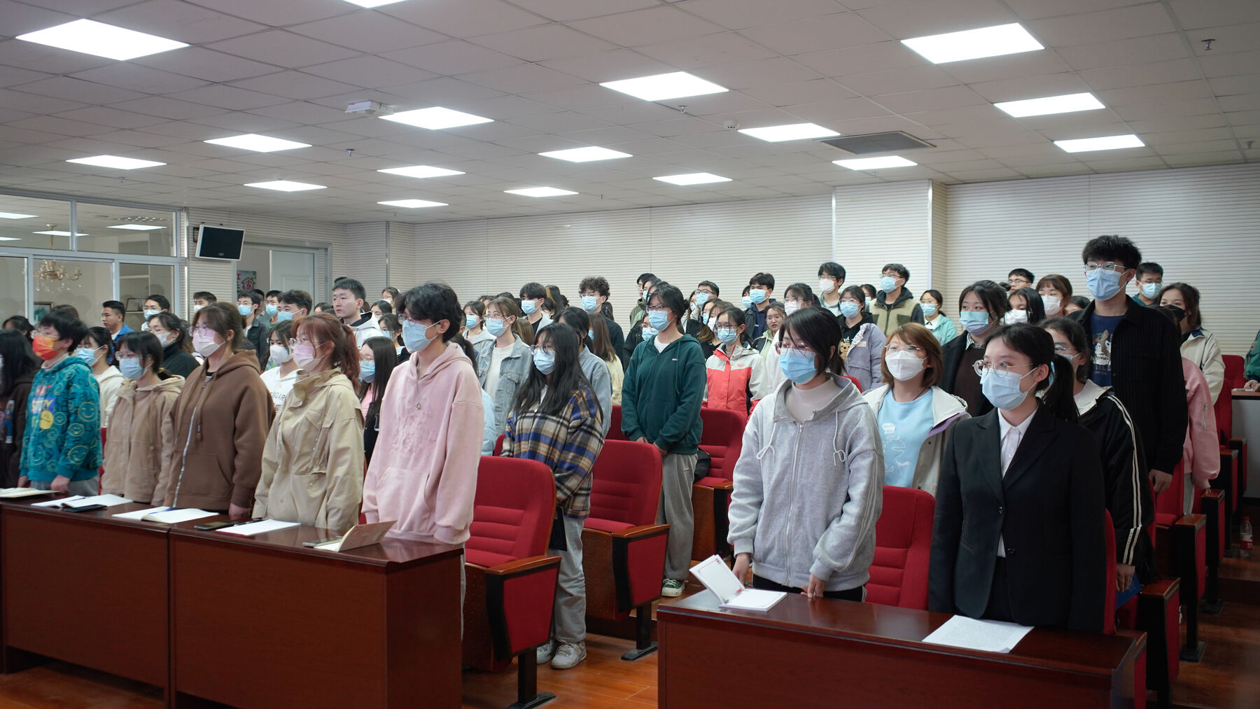 会议伊始,全体起立,奏唱共青团团歌《光荣啊!中国共青团》。
