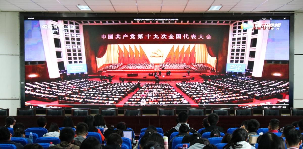 组织全体学生党员在文荟楼东报告厅观看中国共产党第十九次全国代表大会报告视频。本次活动由2014级年级主任何韶华老师主持开展。