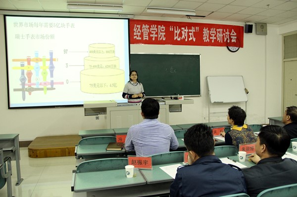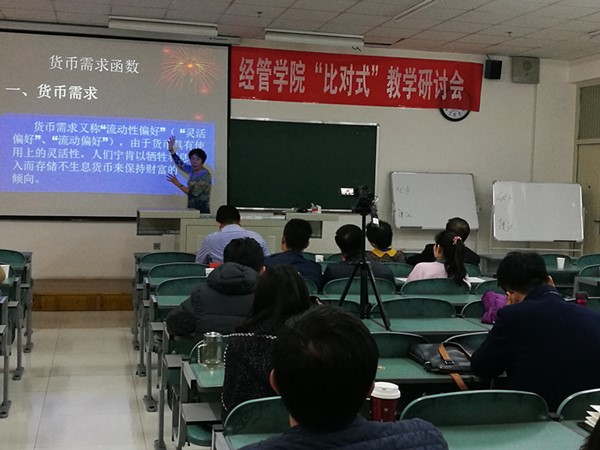 为推动游戏赚钱平台 教师教学能力的提升,促进青年教师专业成长,在宁夏大学教师教学发展中心的大力支持下,游戏赚钱平台 于11月16日下午成功举办了“比对式”教学研讨会的第一期。本期教学研讨会的课程选定为《市场营销》和《宏观经济学》,授课教师分别为马晓云、张淑萍、张小盟和仇娟东,邀请冯蛟副院长、黄立军副院长、陆青山教授、袁红教授、赵振宇副教授等9位教师担任本期活动的专家评委,冯蛟副院长主持此次研讨会,全院教师积极观摩学习。